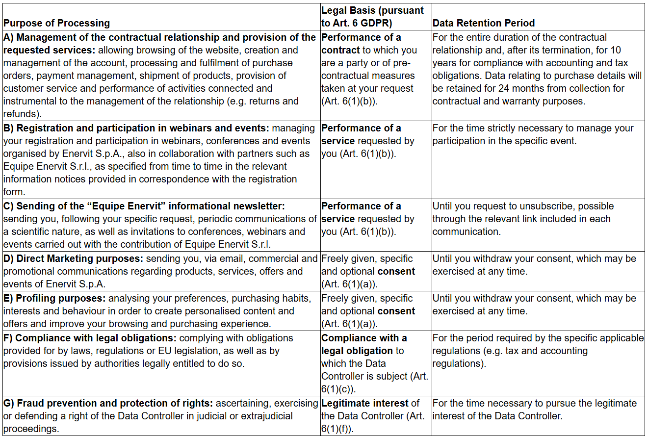 In accordance with Regulation (EU) 2016/679 (“GDPR”), this information notice describes the methods of processing the personal data of users who browse the Enervit S.p.A. website and make use of the services offered.